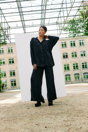 Der lockere Schnitt sorgt für moderne Lässigkeit und macht die Cupro Bluse zu einem vielseitigen Essential für deine Capsule Wardrobe. Mit dem schmalen Gürtel lassen sich individuelle Looks kreieren – tailliert für eine feminine Linie oder offen getragen für einen entspannten, cleanen Stil.